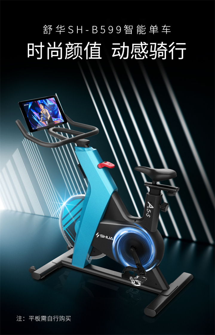 多多28推荐健身器材-舒华动感单车SH-B599采用三角形车架搭配工字底座的稳定结构设计,骑行更稳定,承重可达125kg,手动磁控阻力设计,骑行时无物理摩擦,更顺畅静音,同时无需插电,使用更便捷。13kg磁控飞轮,足量均质,保障骑行时的惯性力及动平衡,骑行劲爽。
