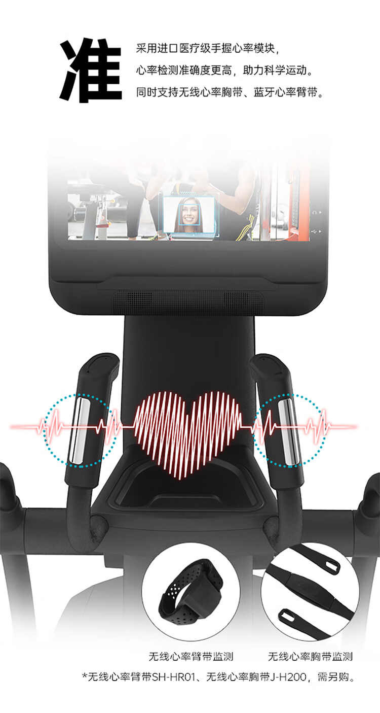 舒华立式商用健身车SH-B9100U(V10)触屏版拥有超大显示和操作屏幕, 可以任意设置阻力、时间和距离等参数,还可以即时显示心跳和转速等数据,同时,SH-B9100U提供多项科学运动处方,更轻松掌握运动节奏。